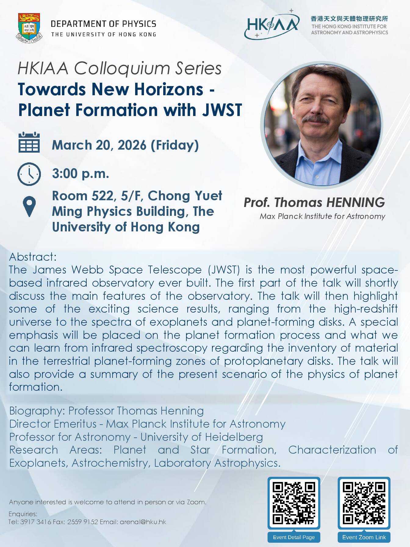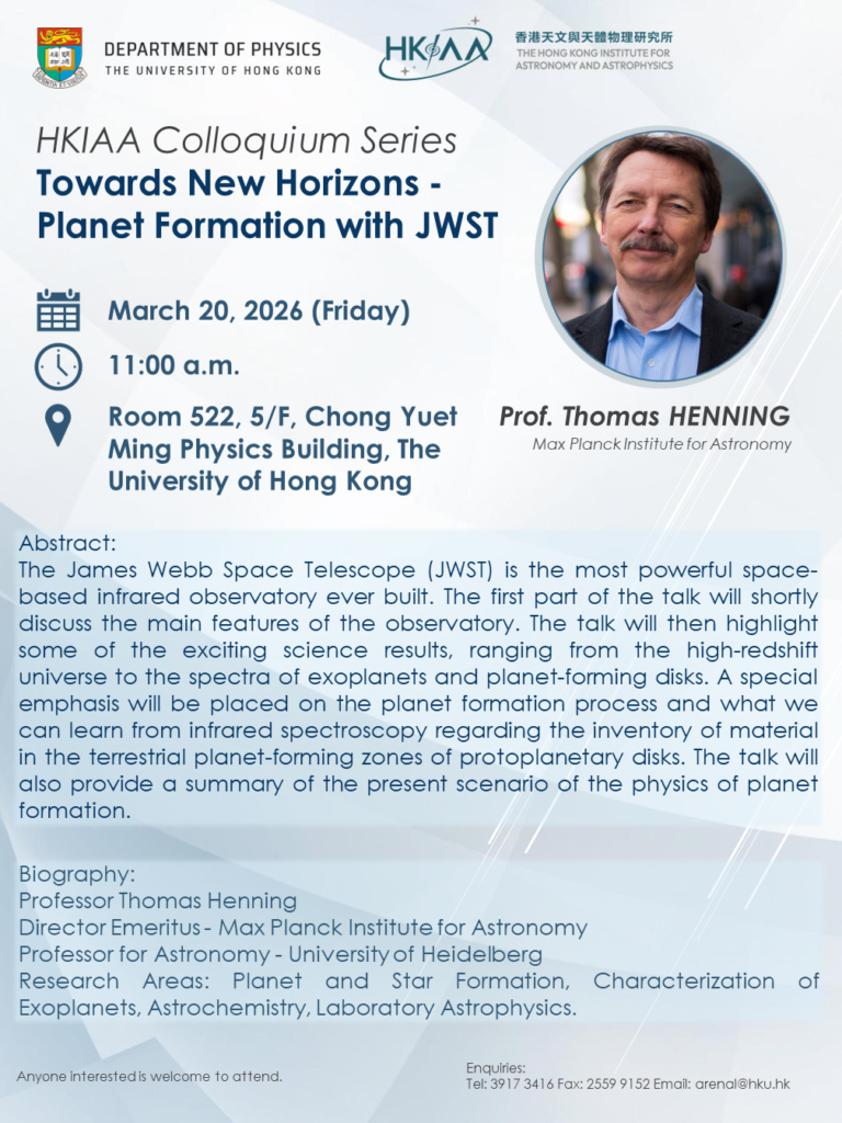 The Hong Kong Institute for Astronomy and Astrophysics, established in 2025 under the University of Hong Kong, currently brings together 26 full and affiliated members from six leading institutions across Hong Kong and Mainland China.
