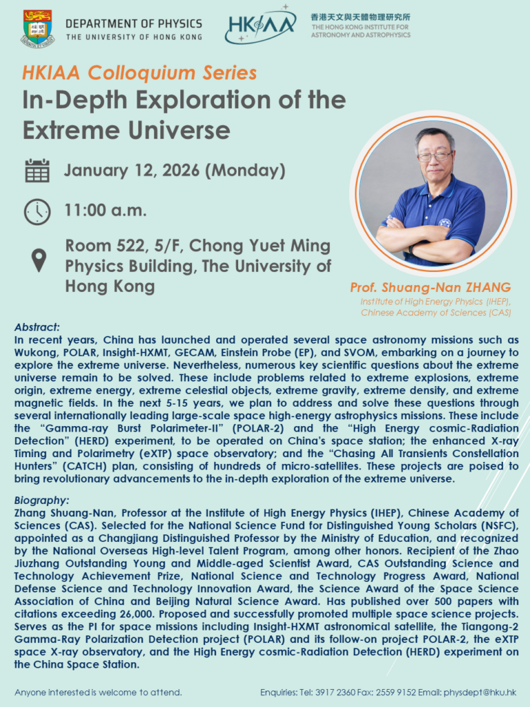 HKIAA Colloquium: In-Depth Exploration of the Extreme Universe