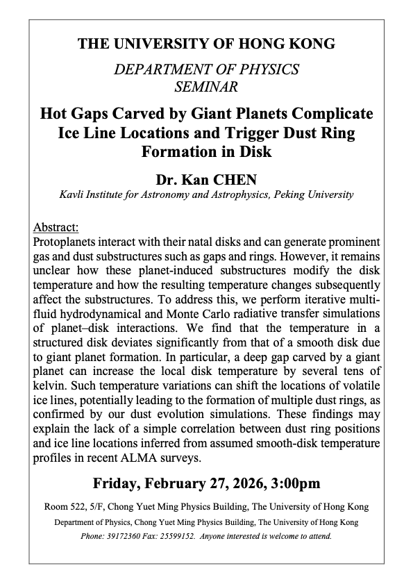 Physics Seminar: Hot Gaps Carved by Giant Planets Complicate Ice Line Locations and Trigger Dust Ring Formation in Disk